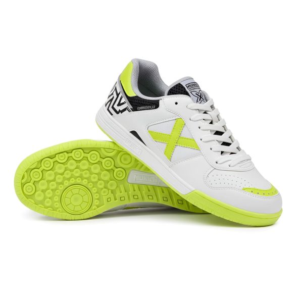 Najudobnejša dvoranska športna obutev Munich One zaznamuje udobje, lahkost in trpežnost, s čimer so primerni za najrazličnejše igralne površine. Odpornost na obrabo izboljšajo brezšivna pritrjenost na podplat, ojačani šivi na strasnkem delu čevlja in visoko kvalitetna vulkanizirana guma na podplatu. Slednji je zaradi oblike utorov zelo pregiben a hkrati čvrst na delih, kjer to zahteva za oprijem s podlago. Izbor materialov omogoča izvrsten oprijem na žogi in njen nadzor v preigravanju. Najpomembnejša lastnost pa je zagotovo udobje, ki jo nudi čevelj One z svojo obloženo notranjosto predvsem v predelu gležnja. Zato jih priporočamo prav vsakemu, ki želi popolno prileganje čevlja, brez tiščanja in žuljev.